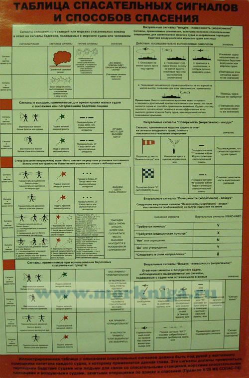 Таблица спасательных сигналов и способов спасения (в соответствии с Правилом V/29 МК СОЛАС-74) на русском языке 620руб